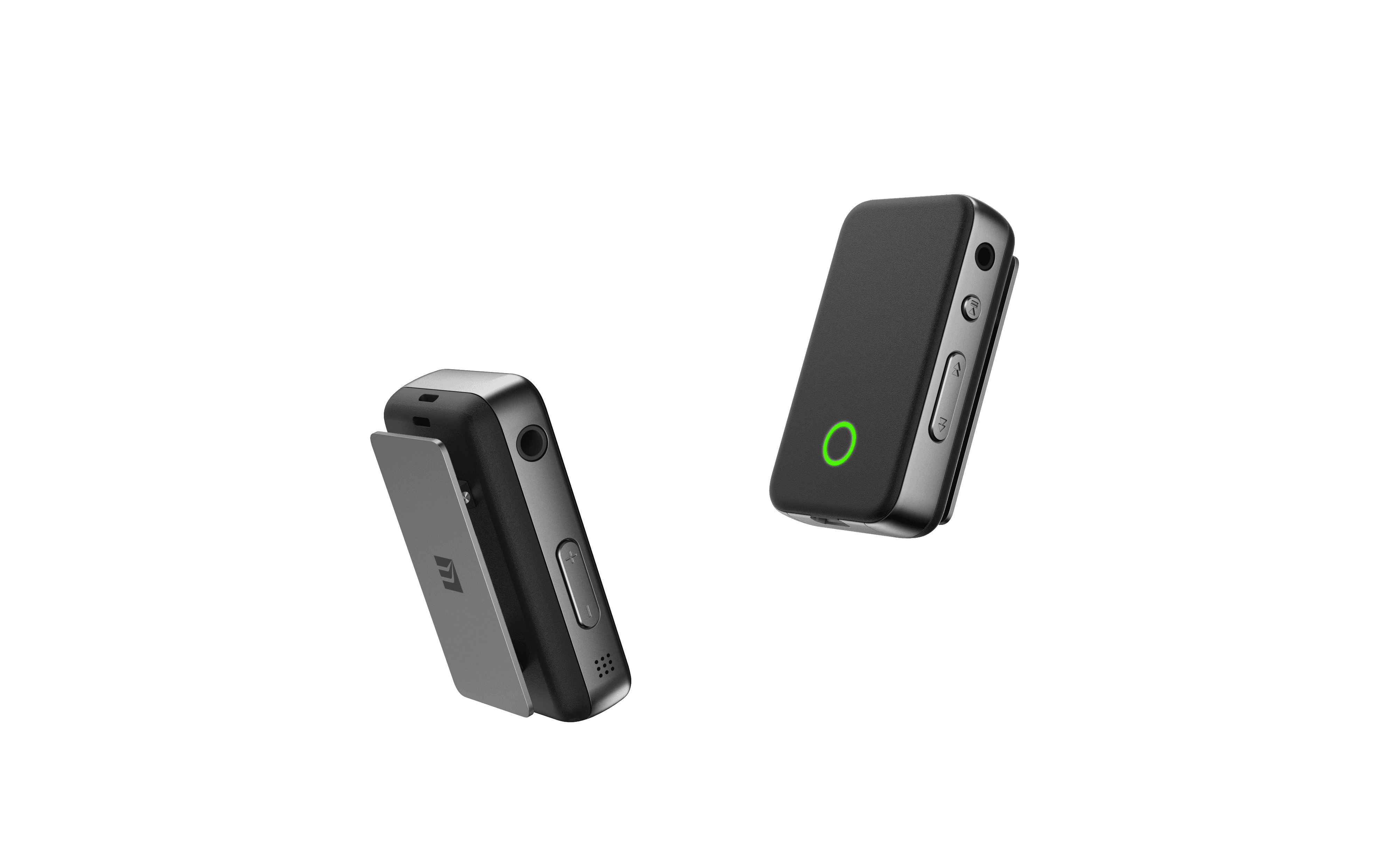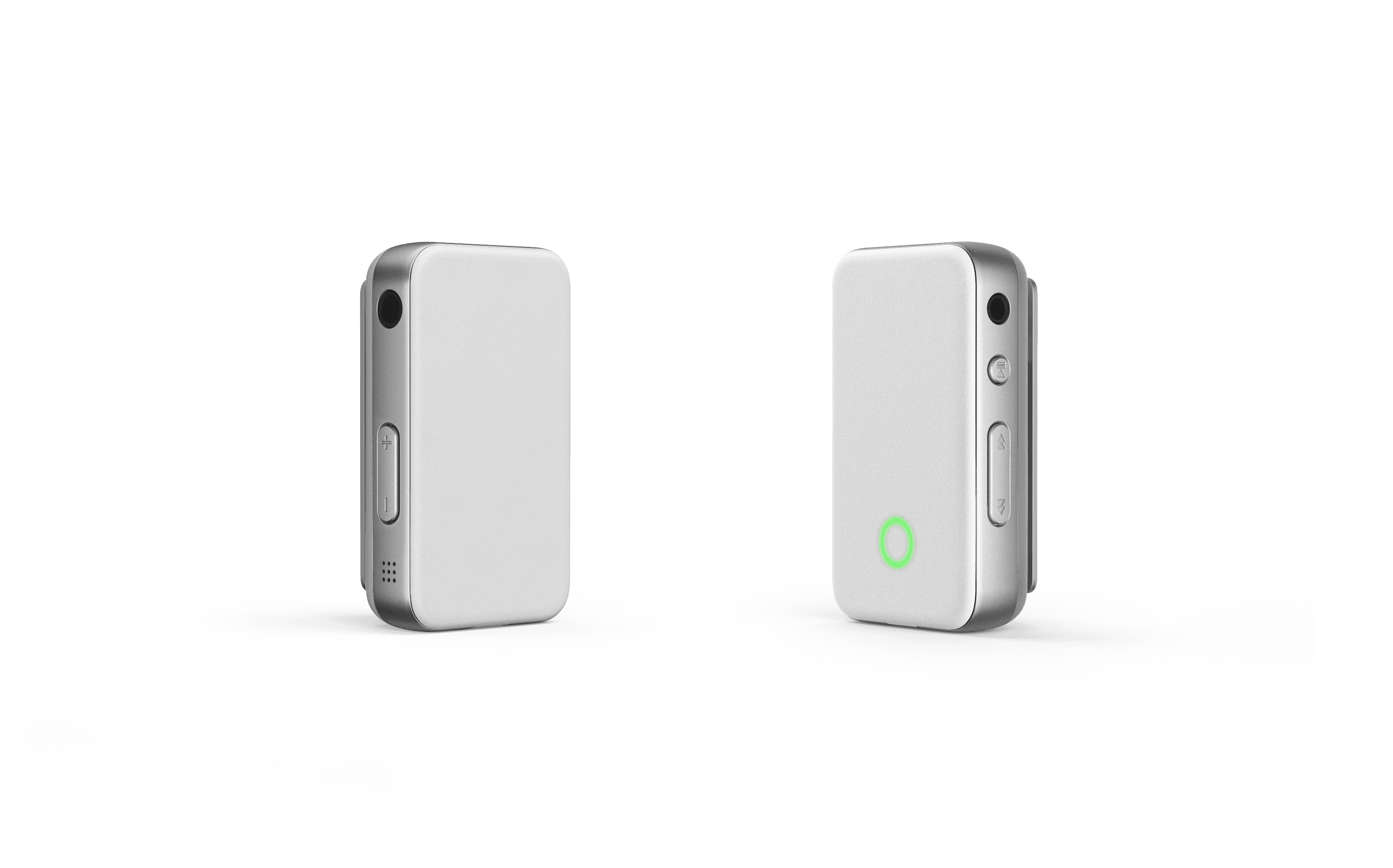 기술적 장치가 일상의 소품처럼 스며들 수 있도록 옷깃이나 가방끈에 고정하는 클립형 구조를 채택했습니다. 무광 마감의 본체는 의류와 부드럽게 어우러지고, 측면의 금속 질감은 전자기기 특유의 정밀함을 대변하며 시각적 균형을 이룹니다. 커버 안쪽에서 은은하게 비치는 원형 라이팅은 전원과 페어링 상태를 직관적으로 전달하며, 불필요한 장식을 배제한 절제된 미학을 완성합니다.